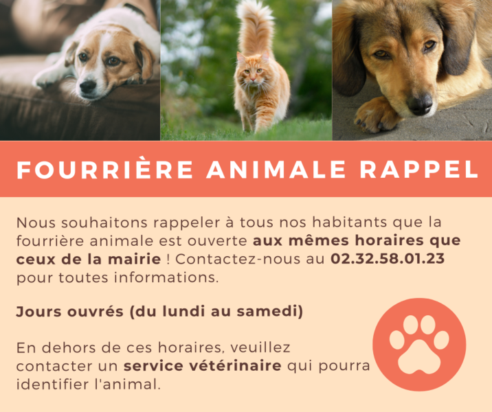 Nous souhaitons rappeler à tous nos habitants que la fourrière animale est ouverte aux mêmes horaires que ceux de la mairie !