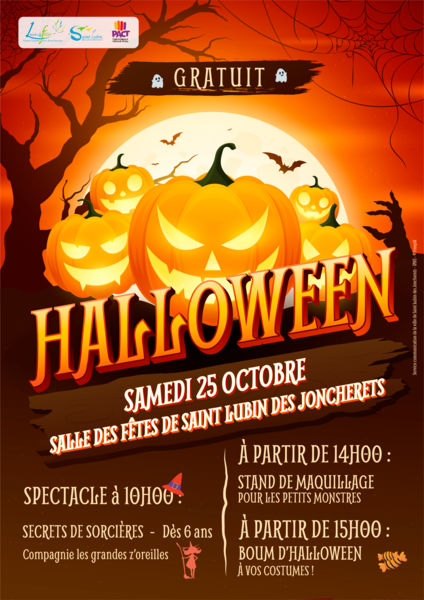 À l'occasion d'Halloween, l'association Loisirs et Fêtes vous invite à la salle des fêtes de Saint-Lubin-des-Joncherets le samedi 25 octobre 2025 pour assister à plusieurs animations !