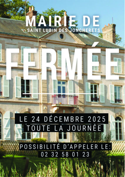 Vous pouvez toutefois nous contacter au 02 32 58 01 23 ou par mail à mairie@ville-saint-lubin-des-joncherets.fr
