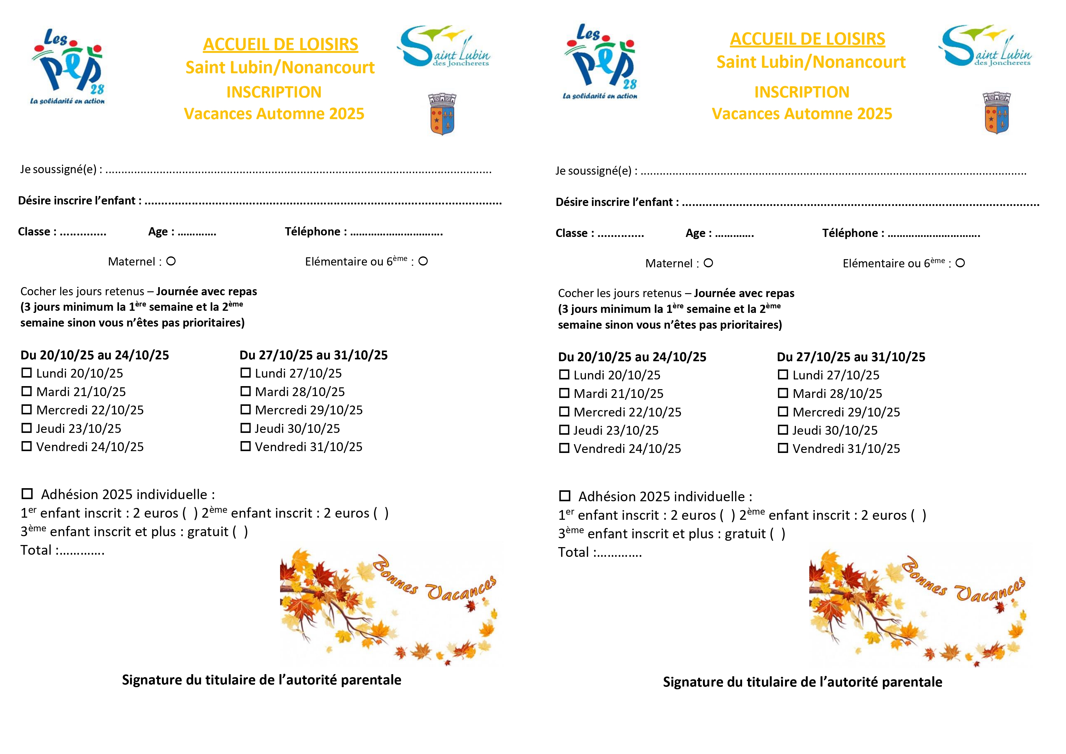 Lubinois et Nonancourtois : à partir du 22 septembre 2025